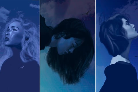 É composta por quatro peças digitais inspiradas na cor azul, em homenagem ao céu e ao mar de Florianópolis. Foi uma das primeiras criações digitais após minha chegada à ilha, influenciada pela imensidão azul que me cercava.