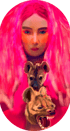 A série Selváticas nasce desse contexto. Usei imagens de animais carnívoros, como harpias, hienas e lobos, para simbolizar a sobrevivência. O vermelho cor carnal e intensa representa o ódio acumulado por tudo que já vivi como mulher. Essa série expressa fúria, força e a vontade de erguer bem alto uma bandeira, declarando que nunca mais serei subjugada. As cores são vibrantes e, pela primeira vez, não me limitei: usei todas. O magenta e o vermelho predominam, carregando esse sentimento visceral e profundo. As imagens retratam movimento, confronto e potência. Foi nesse processo que senti minha energia criativa no auge.